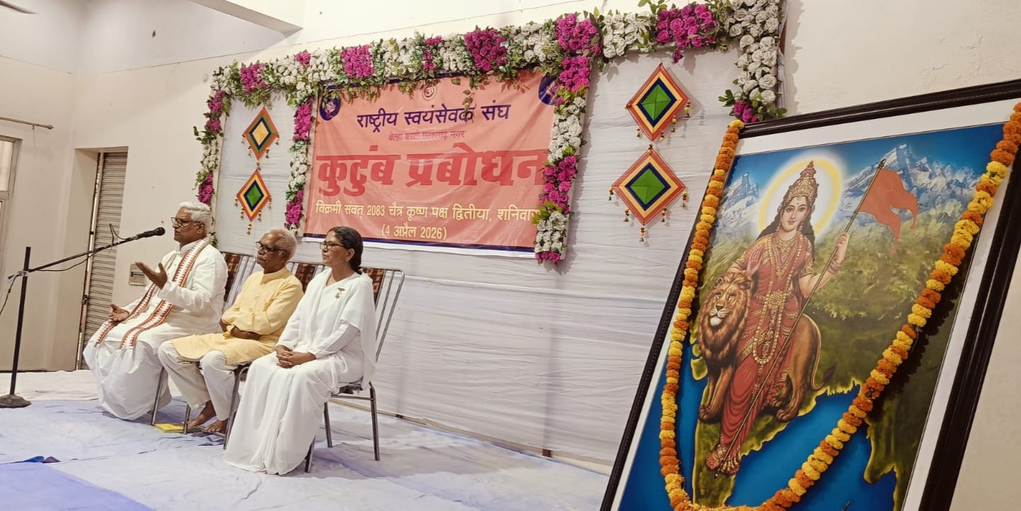 यह न केवल सामाजिक संतुलन बनाए रखती है, बल्कि पीढ़ियों के बीच संस्कारों और ज्ञान का आदान-प्रदान भी सुनिश्चित करती है। उन्होंने कहा कि भारतीय कुटुंब व्यवस्था,हमारी सांस्कृतिक पहचान की आत्मा है। इस मौके पर प्रमुख रूप विभाग प्रचारक ओम प्रकाश,ब्रम्हकुमारी संचालिका बीके दीदी ,जिला प्रचारक प्रवीण,जिला कार्यवाह हेमंत कुमार,विभाग कुटुंब प्रबोधन प्रमुख रघुवीर भी शामिल रहे। कार्यक्रम का संयोजन व संचालन शिव सोनी किया।